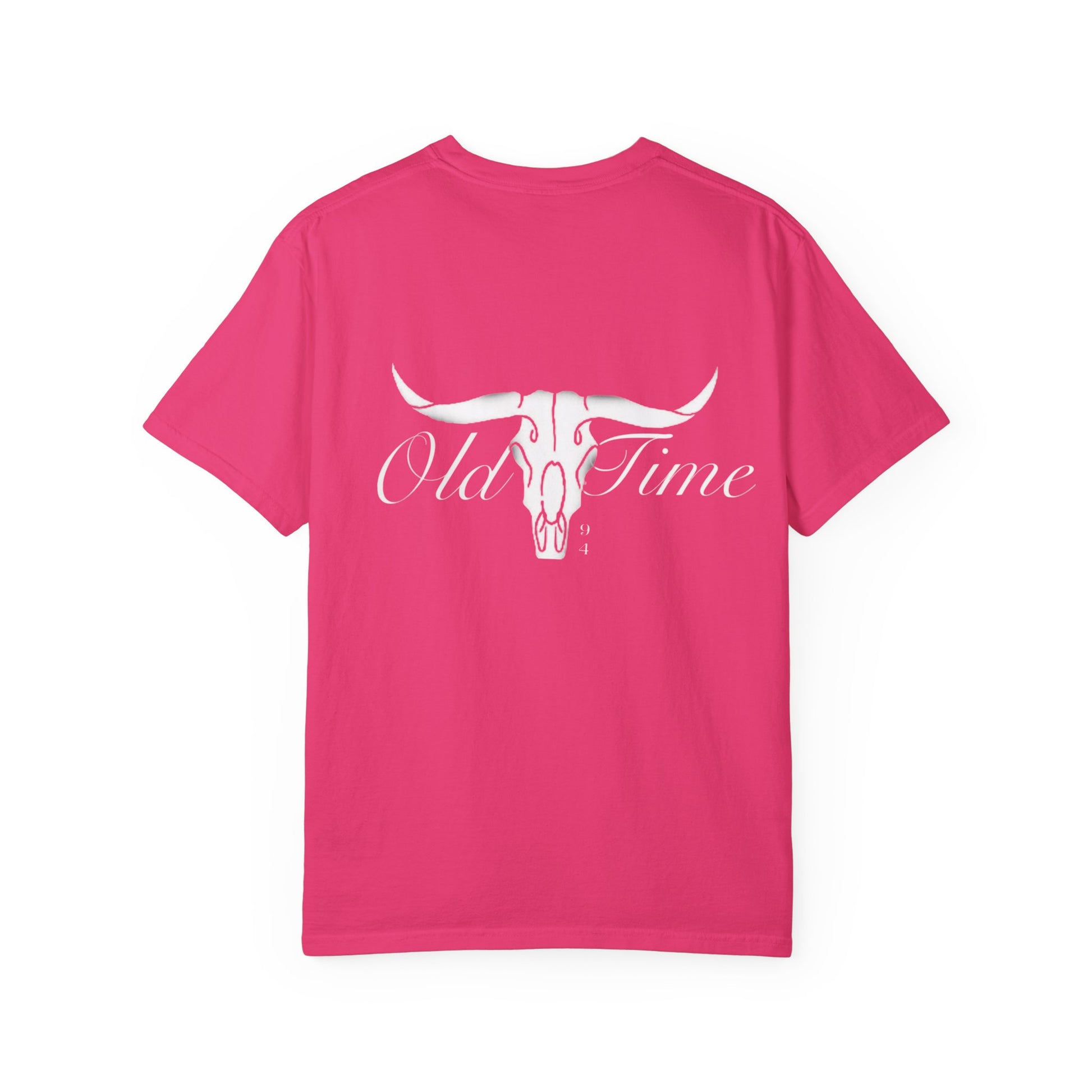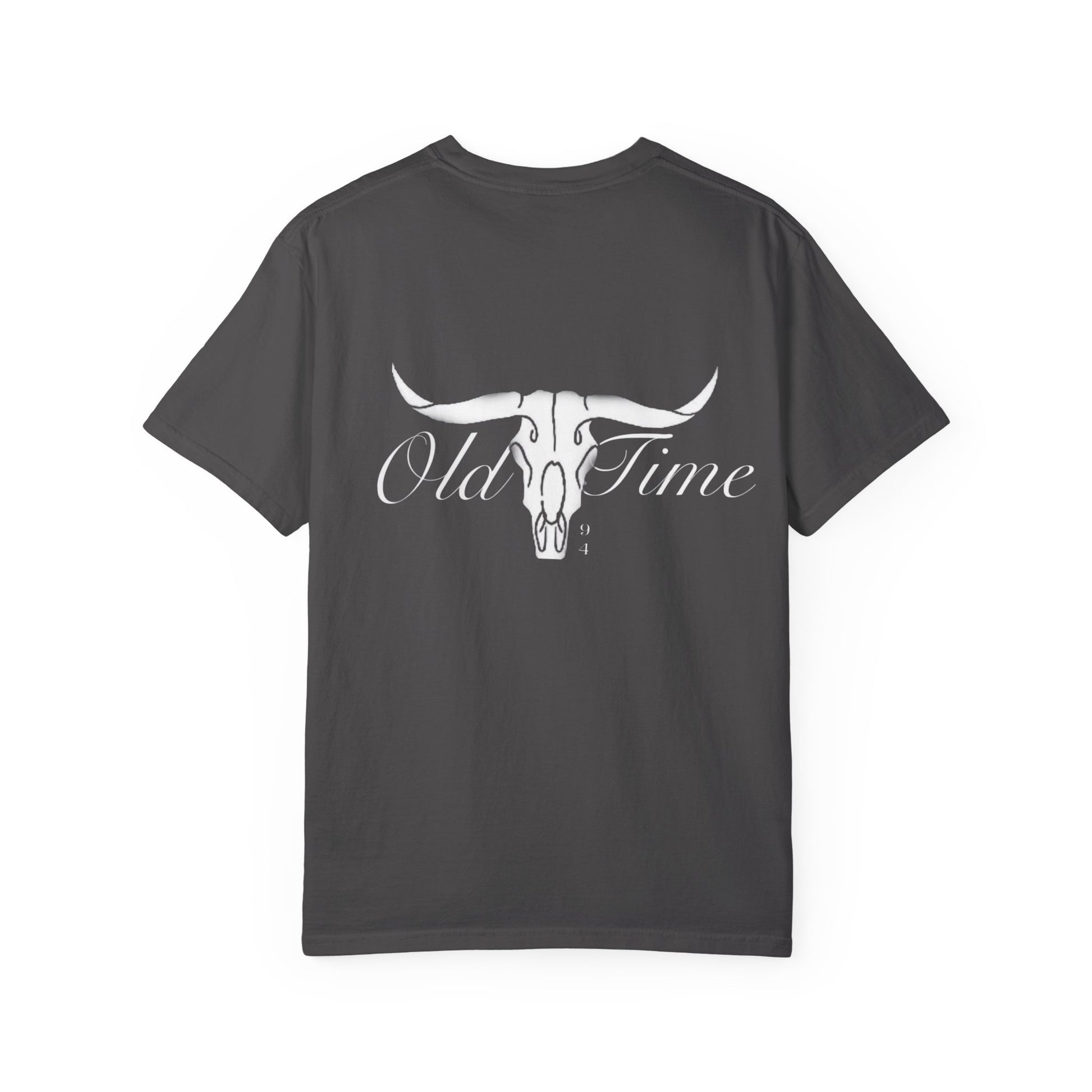 Clean, quietly rugged, and made to be lived in. This garment-dyed 100% cotton tee settles into the body with a soft, lived-in hand and a relaxed silhouette. The subtle embossed longhorn motif on the back reads like a secret for those who notice — low-contrast, low-key, and confident. Wear it for long drives down dusty roads, slow weekends at the ranch, or evenings around a small fire with friends. The medium-weight fabric and tubular knit keep the silhouette simple and durable; double-needle stitching and pre-shrunk ring-spun cotton mean this shirt stays reliable wash after wash. Available in many colors and sizes, it becomes the kind of tee you reach for when you want comfort without shouting for attention.